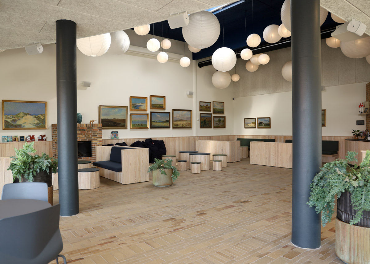 Rummet kombinerer kunstnerisk æstetik, funktionalitet og naturinspiration og giver Henne Strand et sted, der både er smukt, indbydende og meningsfuldt.