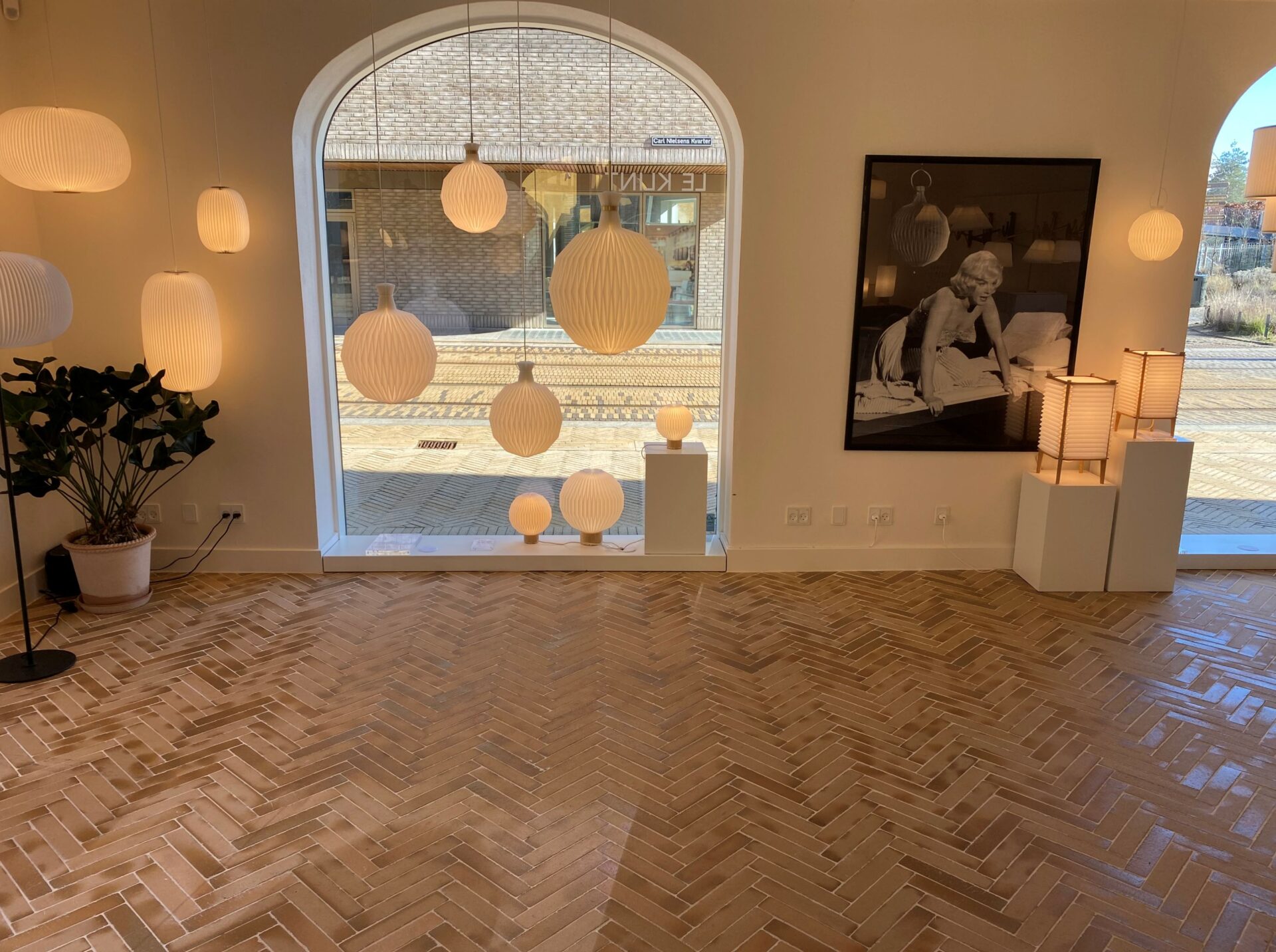 Praksis ArkitekterI september 2022 åbnede Le Klint butik i hjembyen Odense. Butikken ligger centralt placeret i Odenses nyeste kvarter: Odeon-kvarteret. I de smukke, centrale lokaler finder du alt hvad hjertet begærer når det kommer til lamper og smukt design. Her kan du få den ultimative oplevelse med fokus på håndværk og design. Et blikfang er ud over de smukke lamper også teglgulvet, som er den udendørs belægning, trukket ind i rummet.