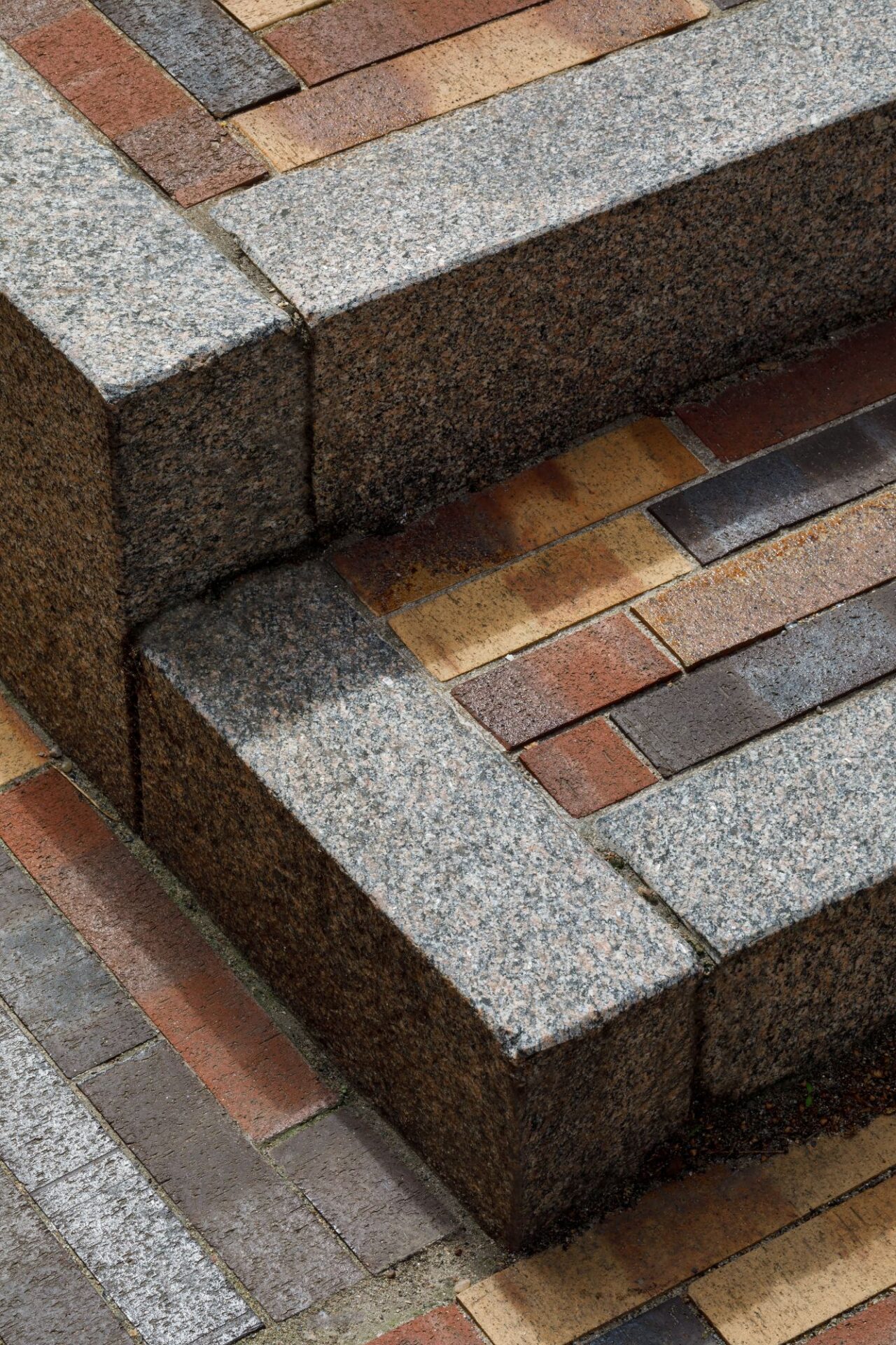 Den specialfremstillede klinkebelægning består af tre farver som er sat på kant, for at opnå de tydelige sættemærker og kraftige kulbrændinger. Klinkerne er lagt i uregelmæssigt 3.dels forbandt, for yderligere at fremhæve farver, kulbrændinger og sættemærker.