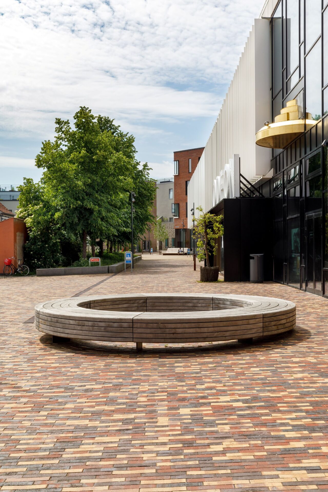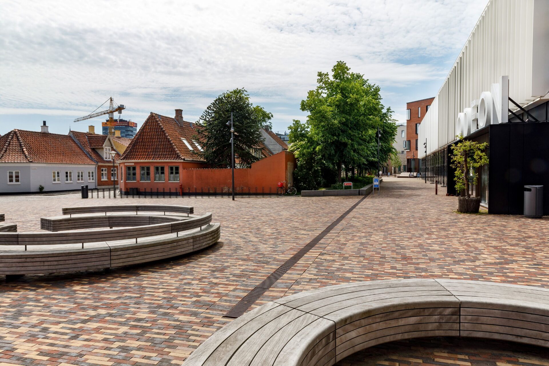 SwecoFor enden af Musikhuspassagen ligger Musikhuset Odeon med en forplads i samme spraglede belægning som på Musikhuspassagen. Pladsen ligger klemt inde mellem nyt og gammelt i Odenses historiske kvarter og som nærmeste nabo til Odense Koncertsal og tager imod besøgende til områdets kulturelle oplevelser.