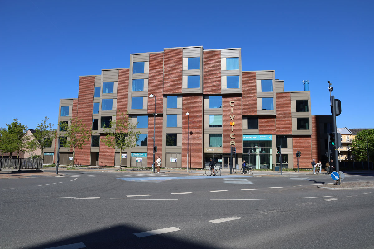 Tømrerfirmaet A-ZNJ Gruppen med Henning Larsen Architects og Rambøll Danmark som rådgivere, har opført 34 nye og arkitekttegnede boliger for Civica i det nye område omkring Thomas B. Thriges Gade i Odense. Boligerne er opført efter DGNB-standarden og som facadebeklædning har man valgt den flotte vores flotte Nordic i farven rustrød i U-profil. Denne tegl er cradletocradle certificeret med udmærkelsen sølv. Tømrerfirmaet A-Z har stået for monteringen.